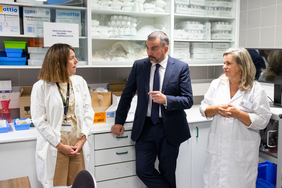 Santiago de Compostela, 1 de setembro de 2023 A Xunta de Galicia, a través do Servizo Galego de Saúde, saca a licitación por preto de 2,5 millóns de euros a compra de equipamento de farmacia para ampliar o Programa de Atención Farmacéutica nas Residencias Sociosanitarias de Galicia co obxectivo de dar cobertura ao 70 % das prazas residencias para persoas maiores e persoas con discapacidade existentes na actualidade en Galicia e a compra de equipamento para automatización das plantas de hospitalización do Hospital de Conxo. Coincidindo coa nova licitación, odirector xeral de Asistencia Sanitaria do Sergas, Jorge Aboal, acompañado da xerente da área sanitaria de Santiago de Compostela e Barbanza, Eloína Núñez, visitou o servizo de Farmacia do Complexo Hospitalario Universitario de Santiago, no Hospital Clínico.